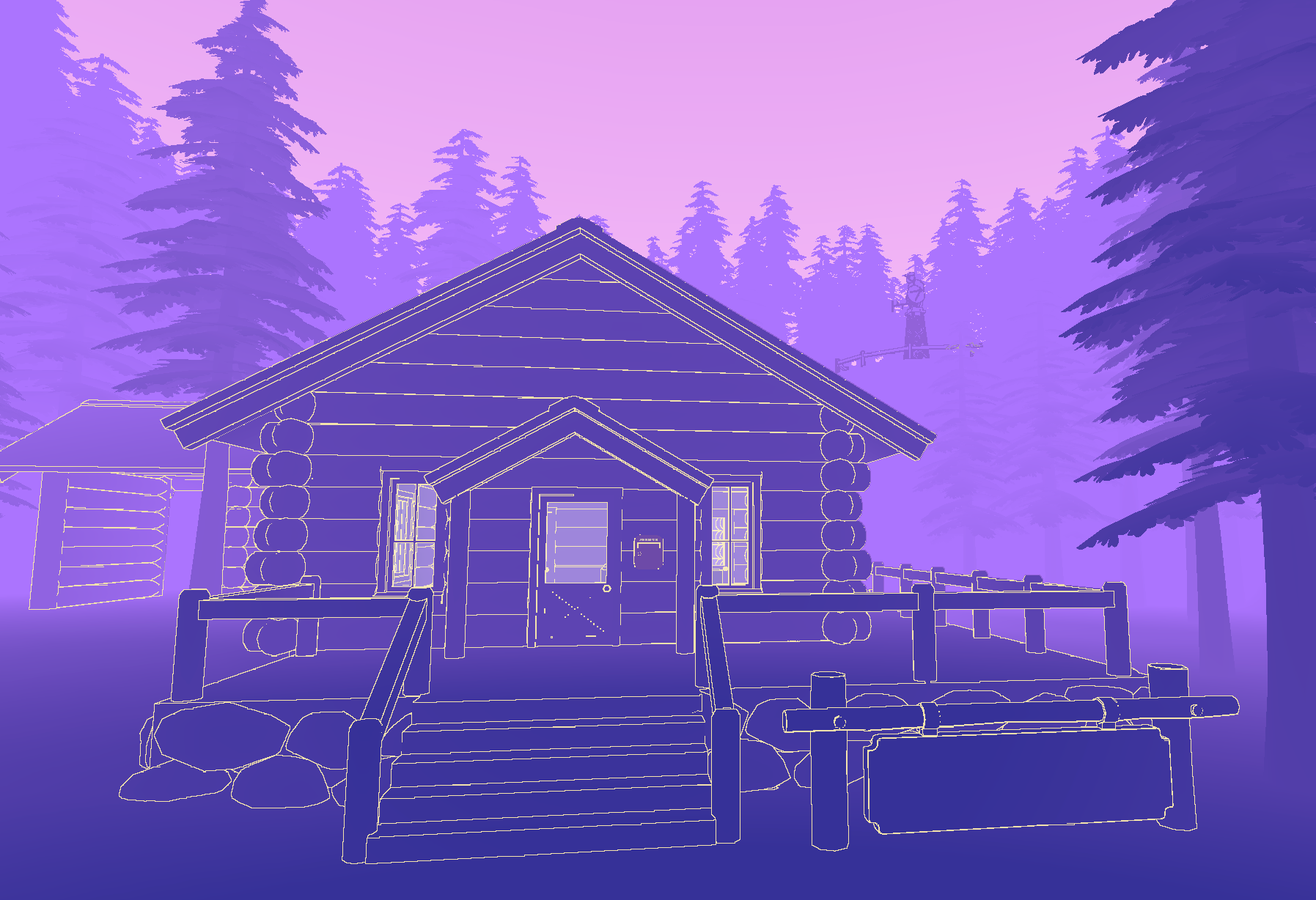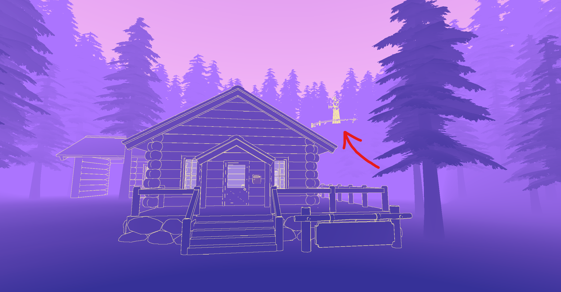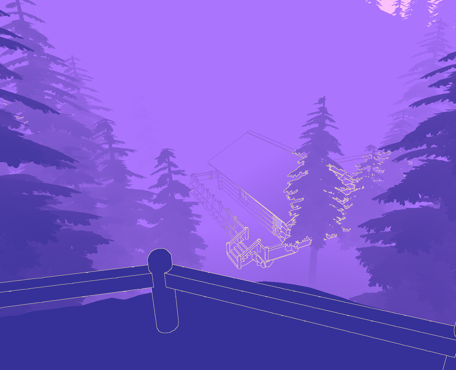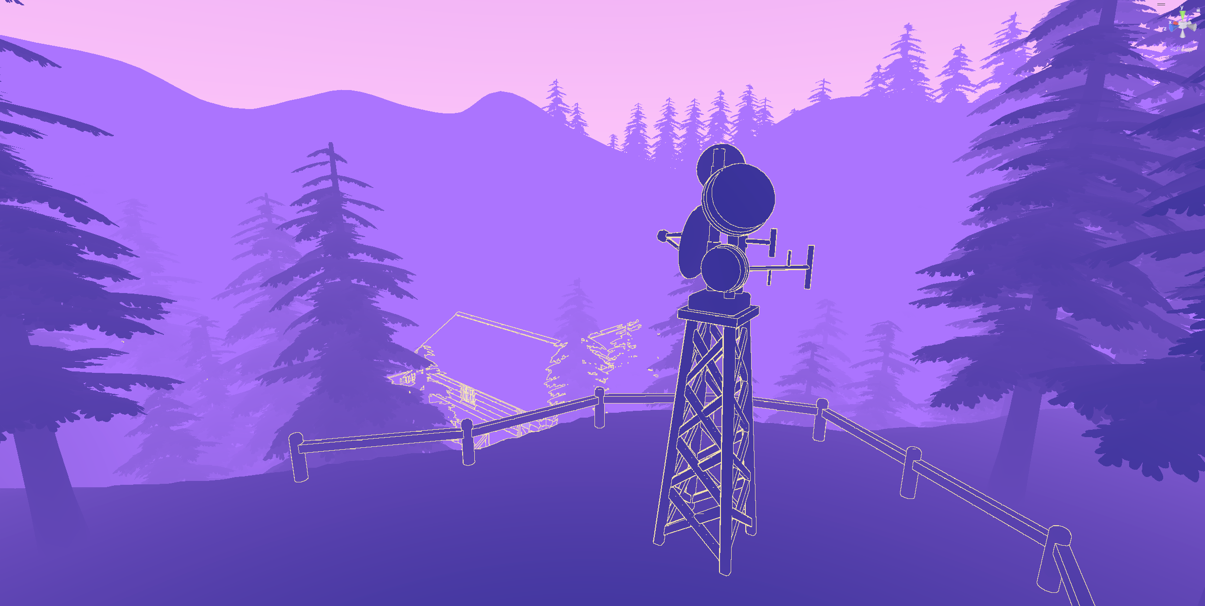 My first solution was to completely fade out the outline color after a certain distance, but that wasn’t ideal either, as the tower would essentially be invisible due to my fog-like rendering. I wanted this tower to be visible, but not take all the attention away from the scene.